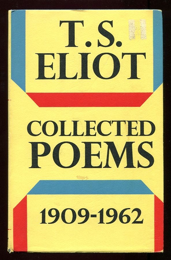 “The Waste Land” was followed by “Hollow Men” (1925), a 98 line piece in the similar vein with nods again to Shakespeare, “Dante’s Inferno,” Guy Fawkes, Joseph Conrad, Rudyard Kipling, and others. It is also more specifically a reflection of collective grief and despair after the First World War. “Ash Wednesday” (1930), “Four Quartets” (1943), and a more whimsical collection called “Old Possum's Book of Practical Cats” (1939) is also out there.